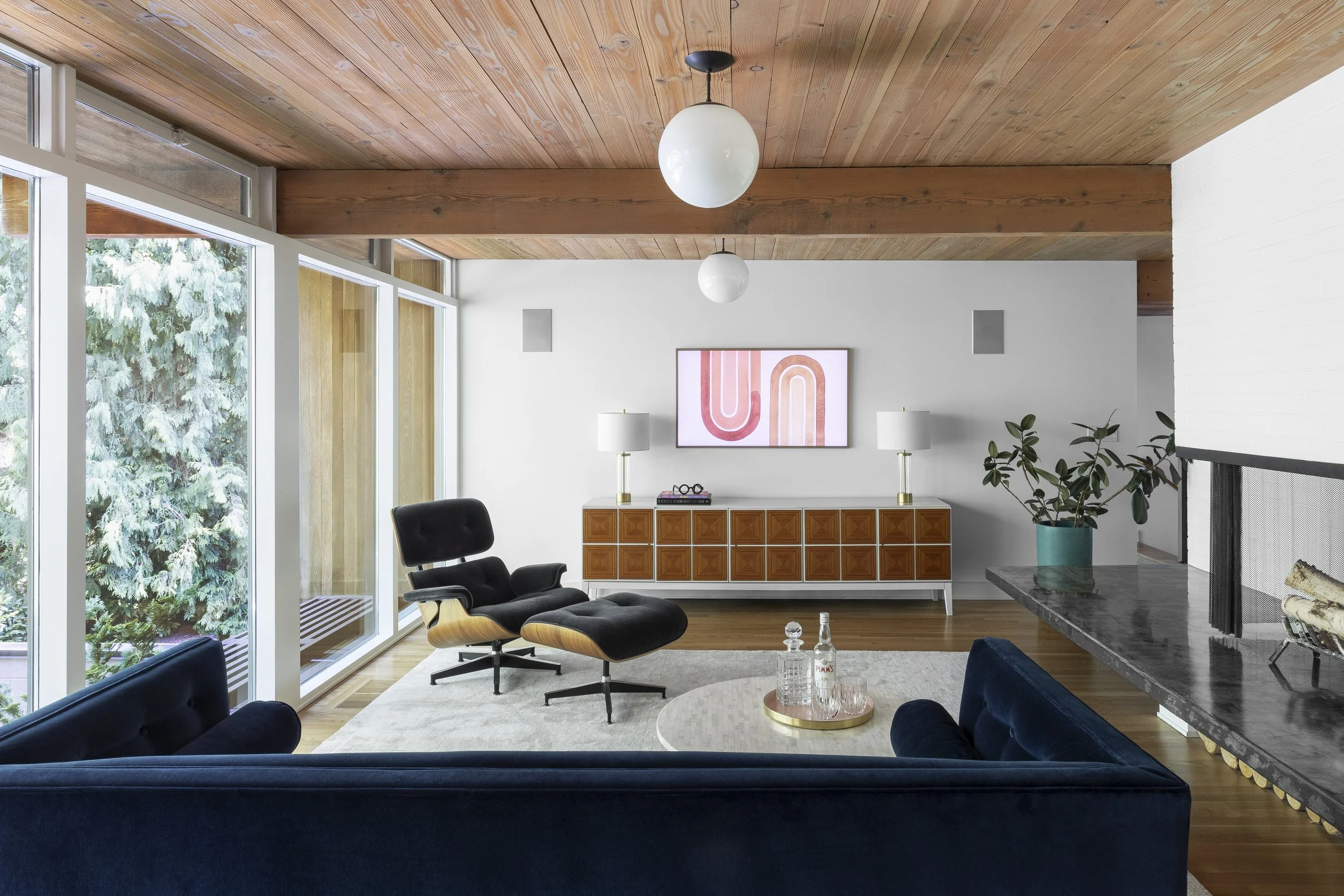 In our Lake Oswego Modern project the focal point is the frame TV.